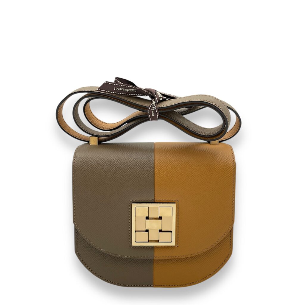 Mosaique Au 24 Casaque Mini Sesame/Etoupe/Bleu Indigo in Epsom, Permabrass hardware