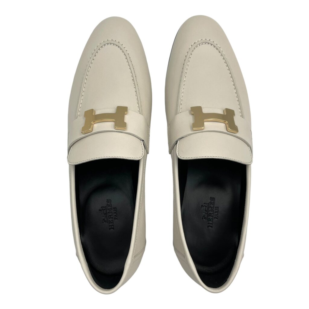 Paris Loafer 38 Beige Glaise Shoes in Goat Leather, Permabrass hardware