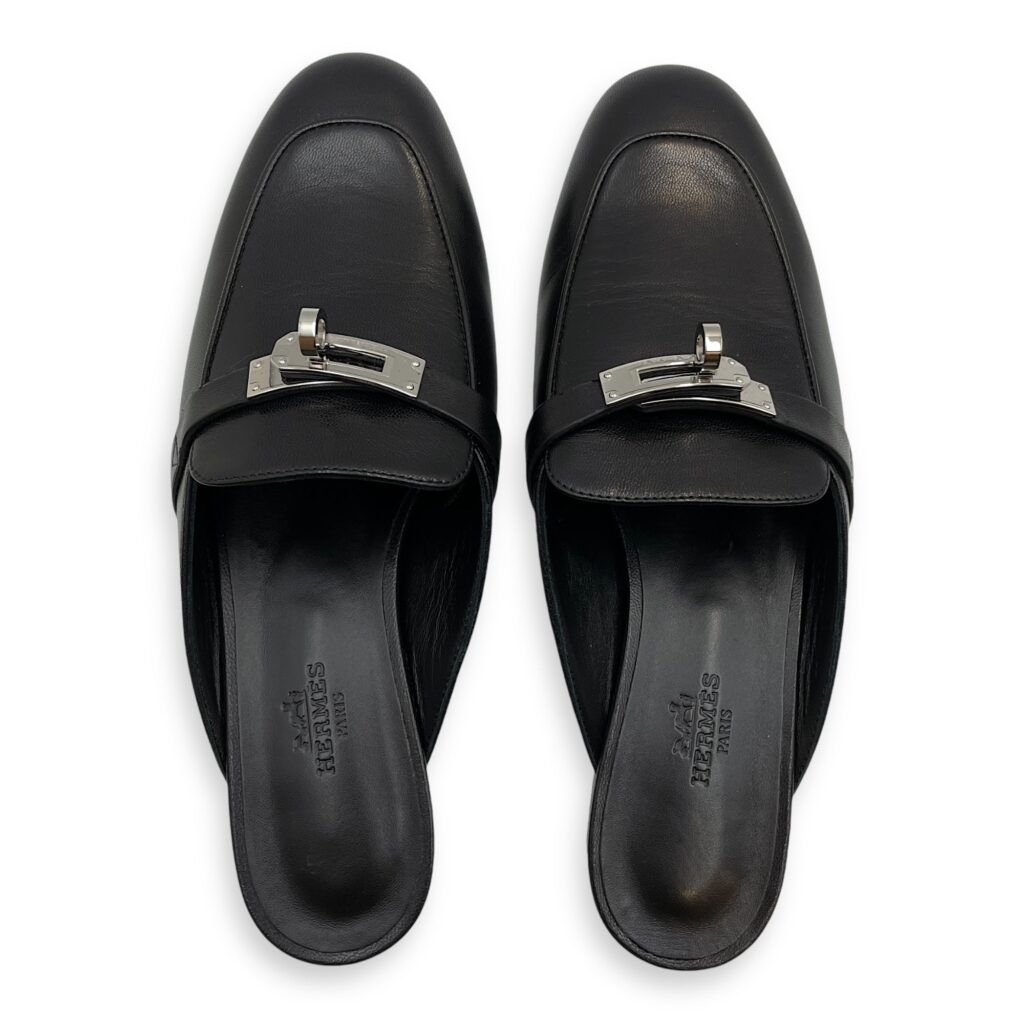 Oz Mules 36.5 Black Shoes in Calfskin, Palladium hardware