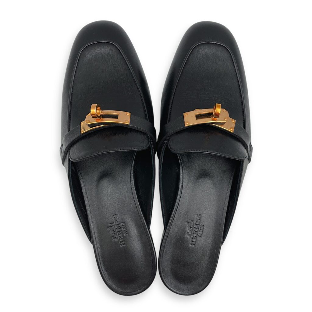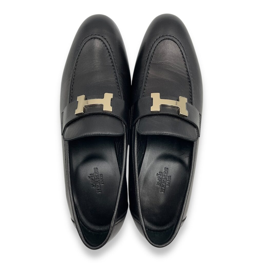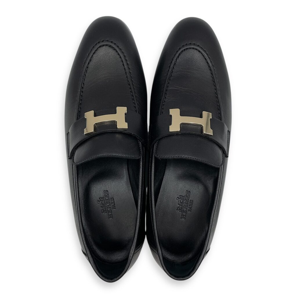 Paris 37.5 Black Loafers in Cherve Leather, Permabrass hardware