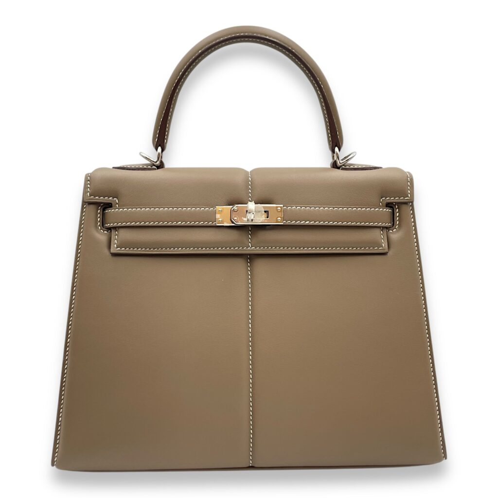 Padded Sellier Kelly 25 Etoupe in Swift, Palladium hardware