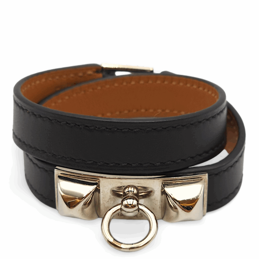 Rivale Double Tour Extra Small Black Bracelet in Swift, Palladium hardware