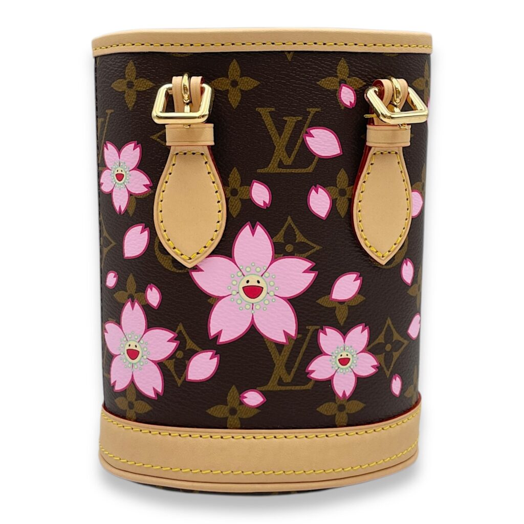 LV x TM Nano Brown Bucket Bag in Canvas, Gold hardware