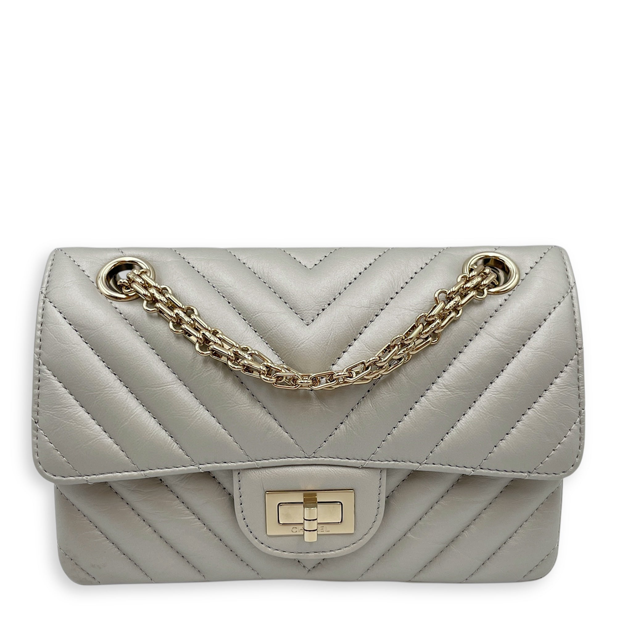 Be the first to review “Chevron 22.55 Reissue Mini Metallic Grey Crossbody Bag in Lambskin, Gold hardware”