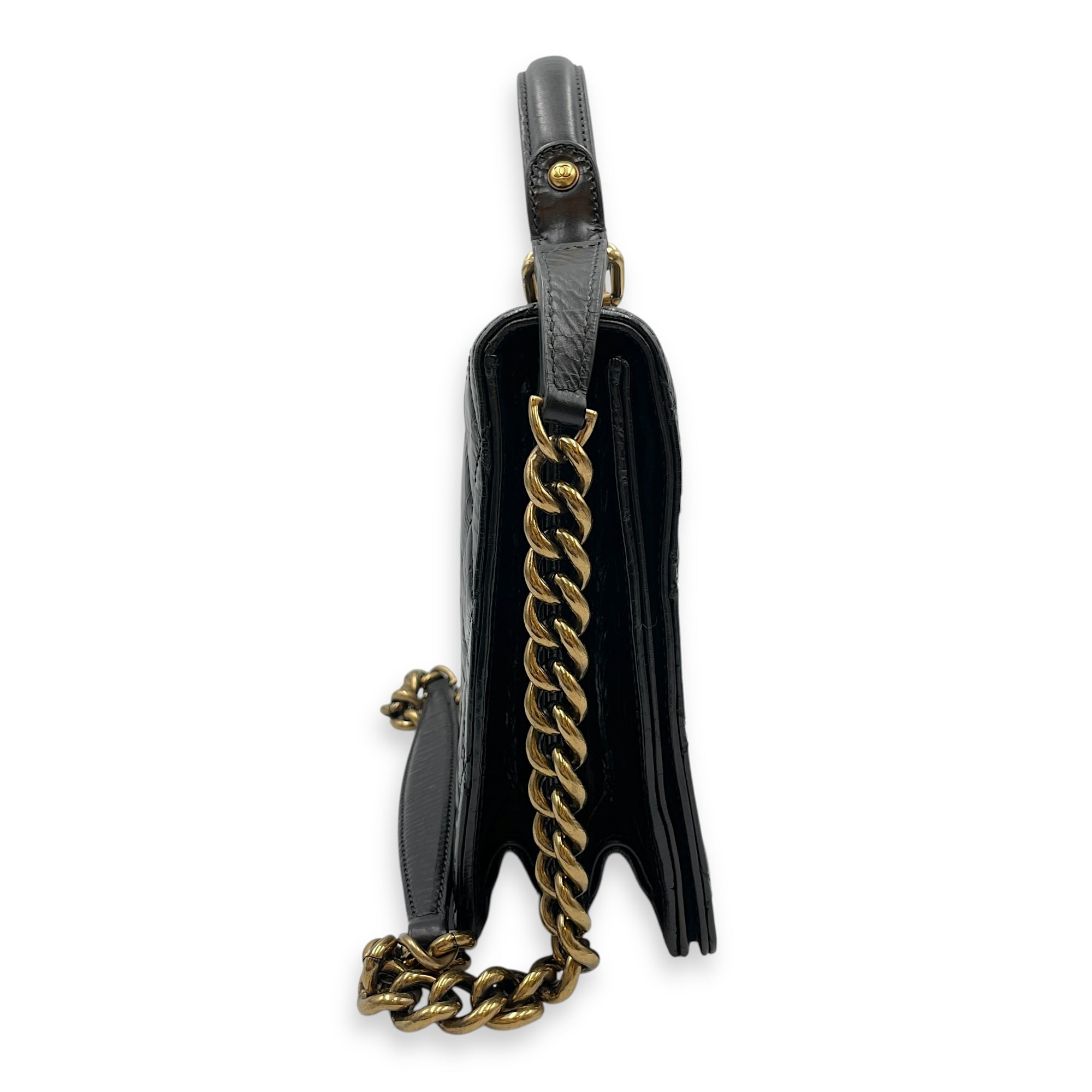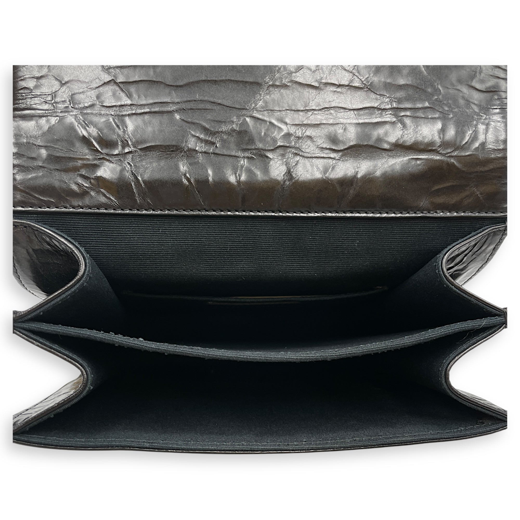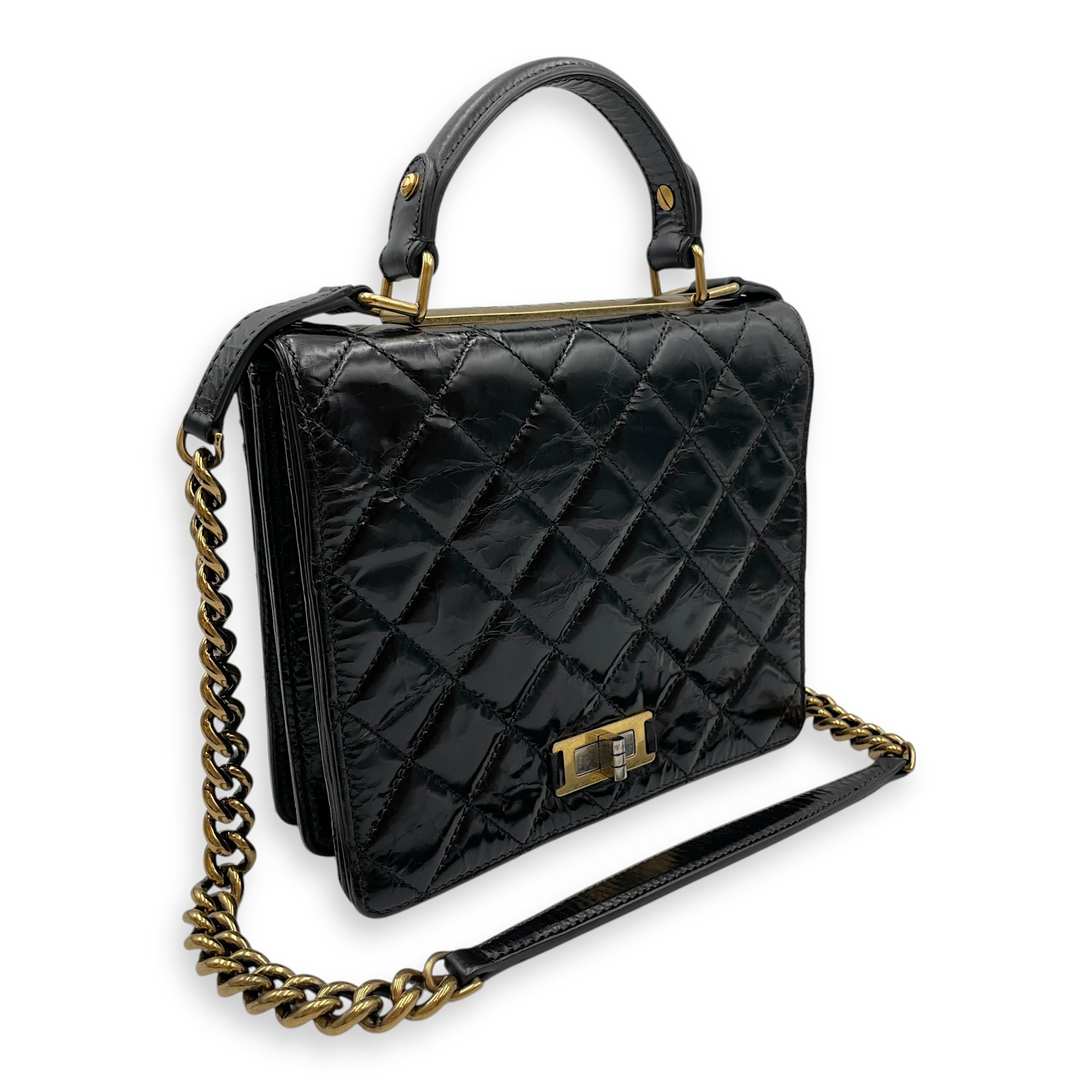 Be the first to review “Crinkled Quilted Rita Flap Black Shoulder Bag in Distressed Leather, Brushed Gold hardware”