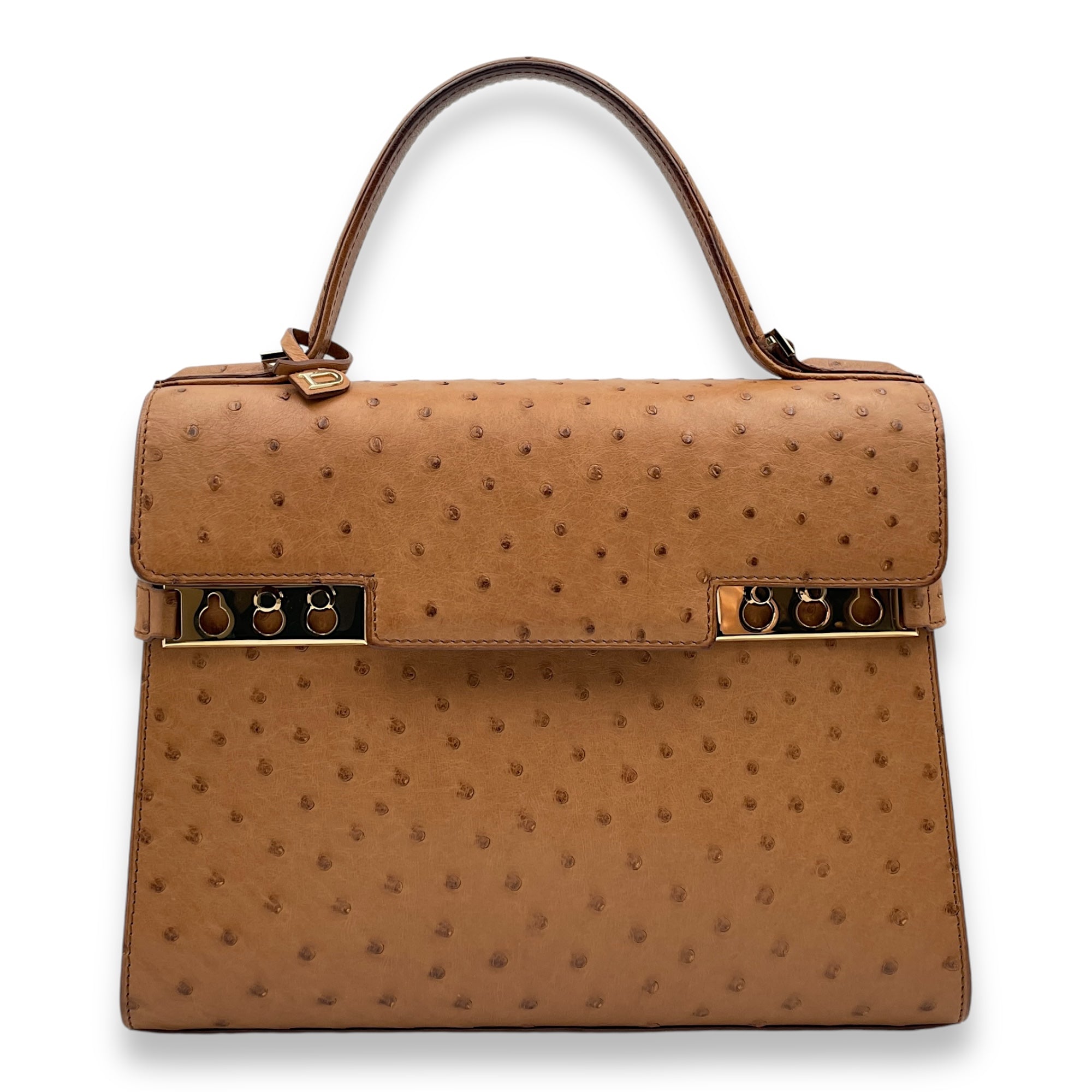 Be the first to review “Tempete MM Brown Top Handle Bag in Ostrich, Gold hardware”